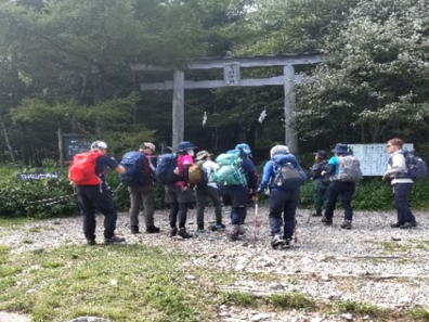 バス山行。調布ICから中央道を経て、ほぼ予定どおり9時頃に落合登山口に到着。参加メンバーは22名といつもより多い。しっかり準備体操を済ませて出発。