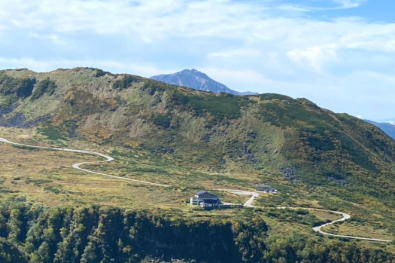 みくりが池温泉のテラスで明日登る大日三山を眺めながら、コーヒーフロートを美味しく頂いてから今宵の宿雷鳥荘に向う。