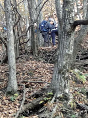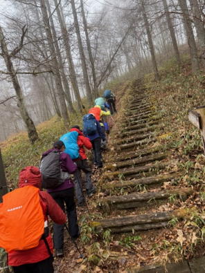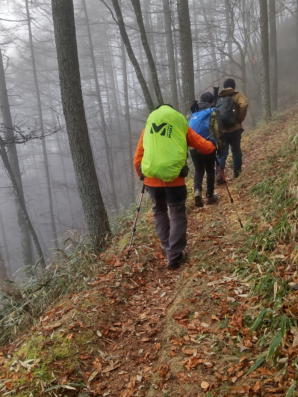 下山ではザレ場や木の根と落ち葉積もる急坂の下りを心配したが、遅れる人もなくスムーズに下ることができた。